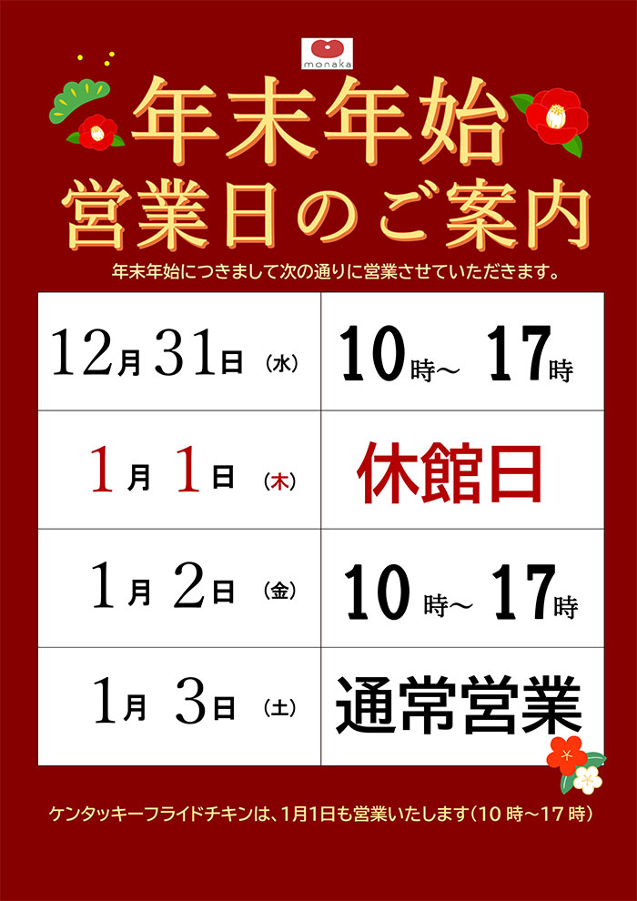 monaka休館日(ケンタッキーフライドチキンのみ営業)