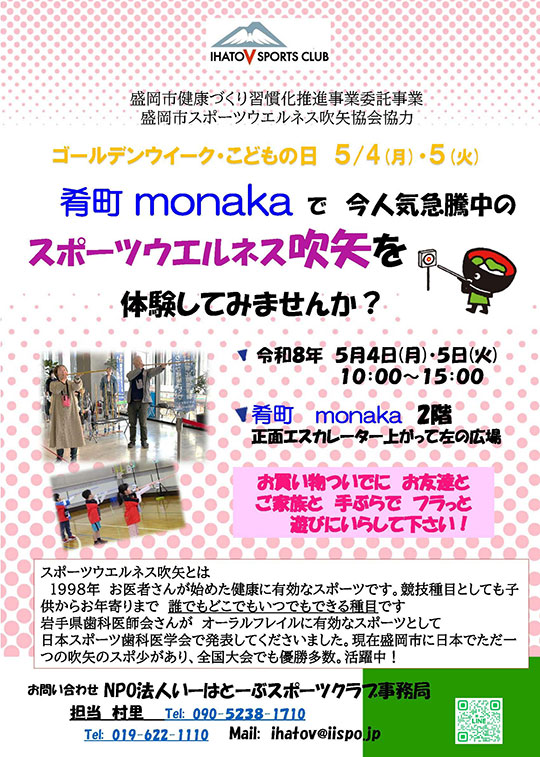 ★ゴールデンウィーク・こどもの日★スポーツウェルネス吹き矢 体験会盛岡市健康づくり習慣化推進業務委託事業