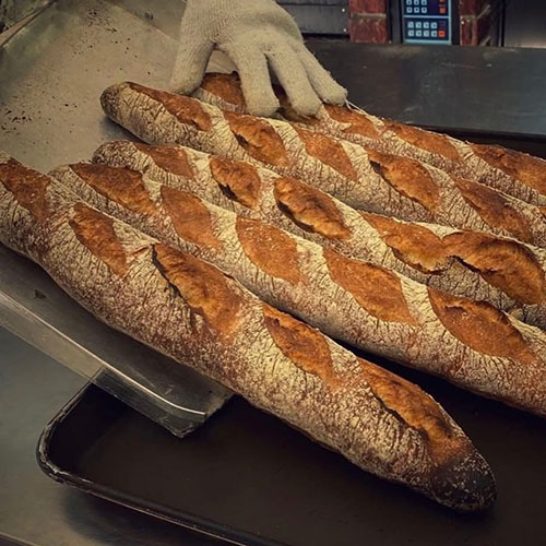 焼きたてはクラストがパリパリとクラムはもっちりとしたバゲットとなっております。