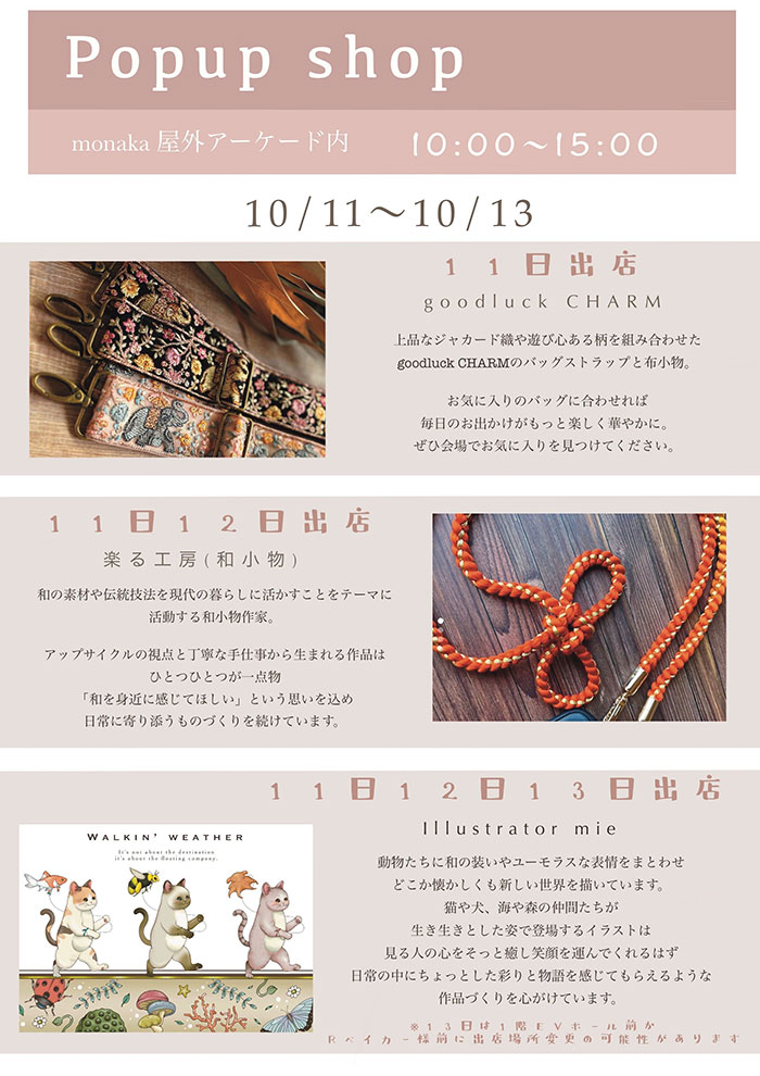 ■ 会場|monaka屋外アーケード内(13日は違う区画となります)