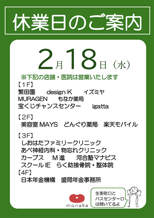 地下駐車場及び東駐車場は通常通りご利用いただけますが、休業日当日はレシート合算での駐車料金割引サービスを行いませんので、ご了承願います。
