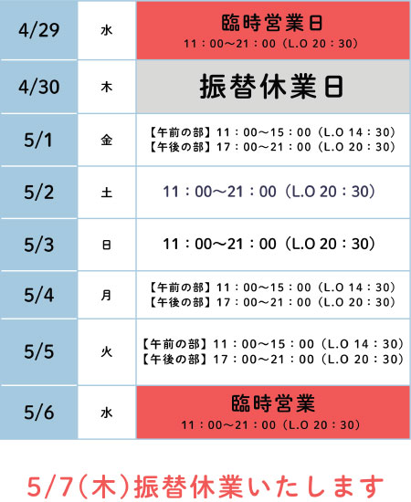 2026.04.29 <ゴールデンウィーク期間>テナント営業日程変更のお知らせ シャトン久太屋牛たん食堂 吉田精肉店 平素より当館をご愛顧いただきまして誠にありがとうございます。 ゴールデン期間中、下記の通り一部テナントにて営業日程が変更となりますので、何卒ご理解賜りますよう、宜しくお願い申し上げます。 新盛岡冷麺とひっつみ 久太屋 レストラン シャトン 牛たん食堂 吉田精肉店 ALL > EVENT & SHOP NEWS一覧